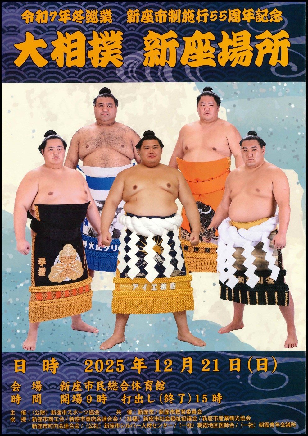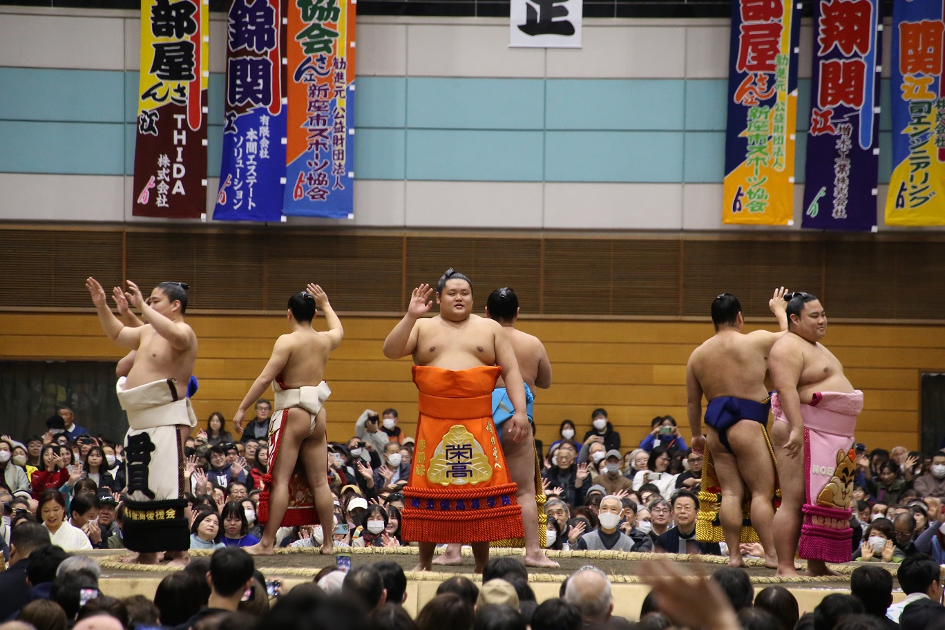 | 大相撲新座場所(御礼) この度の大相撲新座場所の開催にあたり、多くの企業団体の皆様から多大なるご支援を賜りました。 中でも「有限会社本間エステートソリューション様」、「THIDA 株式会社様」におかれましては、いち早くご協賛に名乗りを上げていただき、計画段階から力強いご支援ご協力を賜りました。これを皮切りに、冬巡業最大となる67本の幟の掲出にいたるなど、新座場所を大いに盛り上げる契機となりました。 ![]() 大相撲新座場所にご来場・ご協力を賜り、誠にありがとうございました。無事に開催できましたのも皆様のおかげと心より感謝申し上げます。 開催を迎えるにあたり、多くの団体・企業様からご協賛・ご協力を賜り、また、市民・大学等をはじめとした有志ボランティアの皆様のご協力をいただきました。おかげ様をもちまして、市民総合体育館はじまって以来となる3,500名を超える皆様にお楽しみいただくことができました。初めての開催ということもあり、不手際もあったことと存じますが、地元の皆様に相撲を楽しんでいただき、「未来にずっと 暮らしに『プラス』が生まれる 豊かなまち 新座」の一助となればと一心不乱に進めてまいりました。今回の学びを元に、当協会のスポーツ推進活動をさらに進めてまいりたいと思っております。この度は、誠にありがとうございました。 大相撲新座場所 勧進元 立山健治 |
